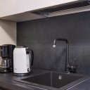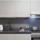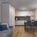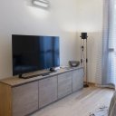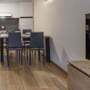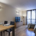 Der geräumige und luftige Wohnbereich öffnet sich zu einem modernen und funktionalen Wohnzimmer, das so gestaltet ist, dass es zu jeder Jahreszeit maximalen Komfort bietet. Eine voll ausgestattete, offene Küche mit Wasserkocher, Kaffeemaschine, Geschirrspüler und hochwertigem Geschirr wird von einem eleganten Essbereich und einem Wohnzimmer mit einem großen Schlafsofa und einem hochmodernen Smart-TV flankiert. Das Schlafzimmer, raffiniert und vielseitig, beherbergt ein Doppelbett, ein Einzelbett und einen bequemen Arbeitsplatz, perfekt für diejenigen, die Entspannung und Aktivität in einem ausgezeichneten Rahmen kombinieren möchten. Das moderne und gepflegte Badezimmer ist mit einer großen Dusche und einer Waschmaschine ausgestattet, die für Funktionalität sorgen, ohne auf Stil zu verzichten.