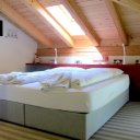 Eine Innentreppe aus Holz führt uns in das Obergeschoss, das mit einem sichtbaren Dach versehen ist und in dem sich drei herrliche Schlafzimmer befinden, alle mit eigenem Bad. Die Zimmer sind geräumig und komfortabel und in einem modernen Stil eingerichtet, der einen angenehmen Kontrast zur klassischen Struktur des Bauernhauses bildet und sich gut in das Dachgeschoss einfügt, wo die schönen Massivholzbalken des Dachstuhls hervorstechen.