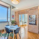 Der Speisesaal ist ein Raum mit viel Liebe zum Detail, der sich durch eine stimmungsvolle Backsteinwand auszeichnet, die Wärme und Charakter verleiht. Der Raum ist ideal für die Bewirtung von Gästen oder für romantische Abendessen, bei denen das Meer immer die Hauptrolle spielt. Eine Schiebetür aus Milchglas trennt auf elegante Weise die Küche ab, einen modernen und funktionalen Raum, der mit hochwertigen Geräten und edlen Oberflächen ausgestattet ist, perfekt für alle, die gerne kochen, ohne auf die Schönheit des Ausblicks verzichten zu müssen.