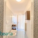 Weiter geht es mit einer praktischen Waschküche und dem ersten Badezimmer, das mit raffinierten Mosaikfliesen und einer geräumigen Dusche von beachtlicher Größe ausgestattet ist.
