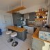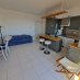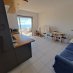 Die Wohnung selbst, die sich im dritten Stock mit Aufzug befindet, ist gut gestaltet und bietet eine großzügige Aufteilung. Vom Eingang aus gelangt man in einen Flur, der zu einem geräumigen Wohnzimmer mit einer großen offenen Küche und einem Frühstücksbereich führt. Dieser offene Raum schafft eine gemütliche und einladende Atmosphäre. Außerdem gibt es zwei Doppelschlafzimmer und ein Badezimmer.