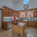 Die voll ausgestattete Küche verfügt über alle notwendigen Geräte für maximalen Komfort, einschließlich Geschirrspüler, Gasherd, Backofen und Doppelspüle unter einem Fenster mit Blick auf die tropische Umgebung.