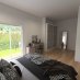 Das Haus ist auf zwei Ebenen: im Erdgeschoss ein heller Wohnbereich, Bad und einen großen privaten Garten mit Pool.