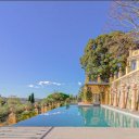 Der terrassierte Garten setzt sich unterhalb der wunderschönen Belvedere-Terrasse fort und hier befindet sich auch der 20 Meter lange Infinity-Pool.