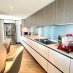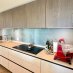 Der Wohnbereich umfasst eine voll ausgestattete, maßgeschneiderte Küche und eine gemütliche Essecke, ideal für den entspannten Empfang von Freunden und Familie.