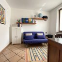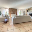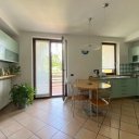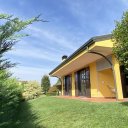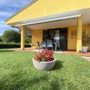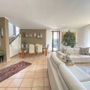 Erdgeschoss Villa von 130 qm: großes Doppel-Wohnzimmer von 70 qm mit Zugang zur Veranda, moderner Edilkamin-Pelletofen, geräumige Küche von 20 qm, Schlafzimmer, Badezimmer.