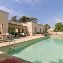 Eingebettet im Herzen der salentinischen Landschaft zwischen jahrhundertealten Olivenhainen und der authentischen Ruhe einer nahezu unberührten Natur präsentiert sich diese elegante Villa mit etwa 295 m² als perfekte Verbindung aus traditioneller Architektur und modernem Komfort. Die Immobilie befindet sich in Contrada Agnano in Nardò, nur wenige Minuten von den kristallklaren Gewässern der ionischen Küste entfernt, und wurde kürzlich mit großer Aufmerksamkeit für Materialien und Details renoviert, wobei lokaler Stein und typische Elemente mediterraner Architektur hervorgehoben wurden. Die Villa erstreckt sich vollständig über eine Ebene und zeichnet sich durch eine harmonische und funktionale Struktur aus, die derzeit in zwei unabhängige Wohnungen unterteilt ist. Der Hauptwohnbereich empfängt mit einem großzügigen Open-Space-Wohnraum mit großen Fensterfronten zur Poolanlage. Drei elegante Schlafzimmer mit jeweils eigenem Bad bilden den privaten Bereich. Die Master-Suite verfügt über direkten Zugang zum Poolbereich und einen privaten Innenhof sowie ein großzügiges Bad mit Dusche und Whirlpool. Die zweite Wohnung ist vollständig unabhängig und umfasst einen Wohnbereich mit separater Küche, ein Schlafzimmer und ein Bad. Das Grundstück umfasst etwa 2.100 m² mit gepflegtem Garten, rund 330 m² gepflasterten Außenflächen und einem beeindruckenden 83 m² großen Pool als zentralem Element der Anlage. Abends beleuchtet schafft er eine besondere Atmosphäre. Die Villa verfügt über Alarmanlage, internen Parkplatz mit elektrischem Tor und Klimaanlage warm/kalt in allen Räumen. Die Lage zwischen dem barocken Zentrum von Nardò und den schönsten Stränden des Ionischen Meeres macht die Immobilie ideal als exklusive Privatresidenz oder Investition im internationalen Markt für Luxusferienhäuser.