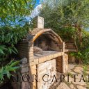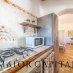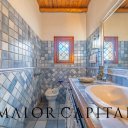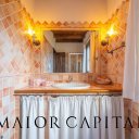Die Inneneinrichtung, mit viel Liebe zum Detail, spiegelt eine zeitlose Eleganz mit einem raffinierten Shabby-Chic-Stil. Die Sand- und Weißtöne, angereichert mit maritimen Elementen, harmonieren perfekt mit dem kontrastierenden dunklen Holz der Türen und Möbel, während die sardischen Wachsbäder die Authentizität des lokalen Designs unterstreichen.