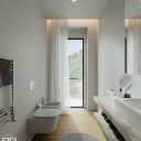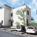 Parkplätze unterteilt. Die Lösung ergibt sich aus der Umwandlung einer Villa aus den 70er Jahren in eine moderne Villa.