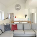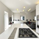 Der Arbeitsbereich, das Wohnzimmer, der Essbereich und die offene Küche zeichnen sich durch ein raffiniertes Design und große Fenster aus, die einen spektakulären Blick auf das Meer und die Kathedrale bieten.