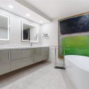 Italienische Türen LUALDI von Piero Lissoni Maßgeschneiderte Küche (nicht vom Bauträger) mit Minibar Spitzengeräte Sub-Zero-Kühl- und Gefrierschrank, 2 Sub-Zero-Weinkeller Verdrahtete elektrische Jalousien California Closet Cabinets Hauptbadezimmer mit maßgefertigtem Waschbecken, Pariser LED-Spiegeln mit Hintergrundbeleuchtung und TOTO NEOREST-Toilette