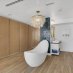 Die Master-Suite wurde als authentischer Spa-Rückzugsort konzipiert, mit einer freistehenden Designer-Badewanne und einer begehbaren Dusche mit Sauna-inspirierten Elementen, die eine Umgebung der puren Entspannung und des Wohlbefindens schaffen.