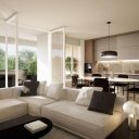 Es besteht die Möglichkeit, mit der verkaufenden Firma eine Teilmöblierung zu vereinbaren. Die Wohnung ist aufgeteilt in eine Eingangshalle, ein Wohnzimmer mit Loggia und offener Küche, ein geräumiges Doppelschlafzimmer mit eigenem Bad mit Duschkabine und Zugang zum Balkon, ein zweites Einzelschlafzimmer mit Fensterbad und einer praktischen Nische für Waschmaschine und Trockner.