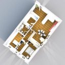 Die Wohnung befindet sich im 3. Stock und besteht aus: Eingangshalle mit direktem Zugang zum Doppelwohnzimmer, Wohnküche, die durch zwei große Schranktüren vom Wohnbereich getrennt ist, große Garderobe/Waschküche, gut abgetrennter Schlafbereich mit großem Steinbad und Doppeldusche mit Chromotherapie-System, Doppelschlafzimmer, Schlaf-/Arbeitszimmer, zweites Bad ebenfalls mit Dusche aus Bisazza Gold-Mosaik.