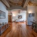 Der warme und helle Parkettboden begleitet den Blick auf die prächtigen Deckenfresken der Antelami-Schule und schafft einen faszinierenden Dialog zwischen Kunst und Architektur. Die großen Höhen verleihen den Räumen Atem und Feierlichkeit, während die mit maßgefertigten Schränken ausgestatteten Korridore den inneren Weg mit Ausgewogenheit und Eleganz markieren.