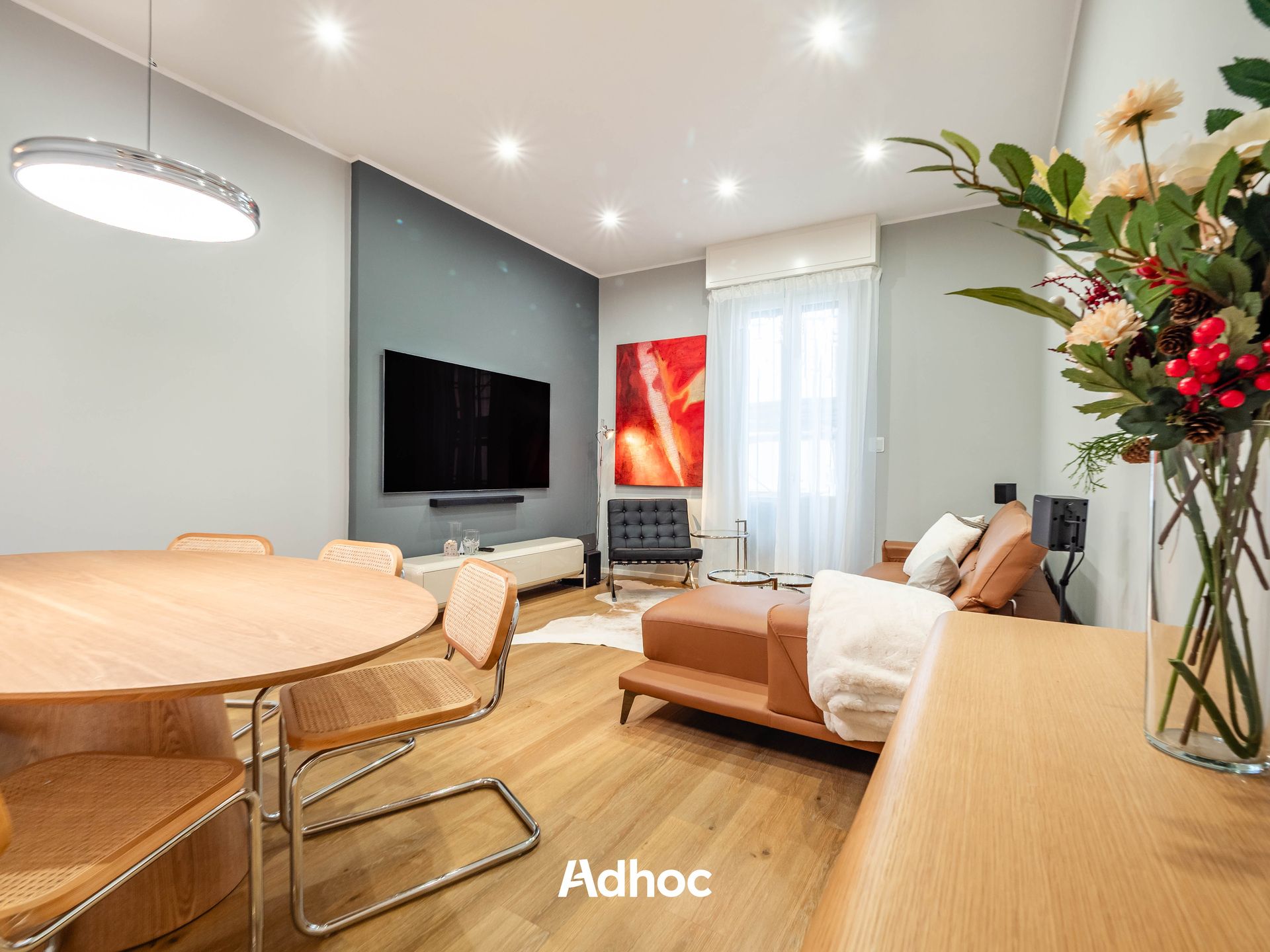 Die 2025 komplett renovierte Immobilie befindet sich auf einer einzigen Ebene im ersten Stock und ist mit einem Aufzug erreichbar. Das Innere zeichnet sich durch moderne Oberflächen, klare Linien und eine äußerst rationelle Raumaufteilung aus, die auf ein Maximum an natürlichem Licht und Wohlbefinden im Inneren ausgerichtet ist.