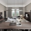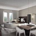 Die Wohnung empfängt die Gäste mit einem geräumigen Wohnzimmer und einer Küchenfläche von nicht weniger als 70 Quadratmetern, wo die Inneneinrichtung mit Liebe zum kleinsten Detail eine perfekte Mischung aus Tradition und Moderne zum Ausdruck bringt.