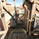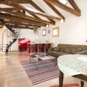 Der Zugang zur Wohnung erfolgt über eine bequeme und breite Treppe, wo wir von einem hellen Korridor empfangen werden, der in den geräumigen Wohnbereich führt, der mit einer modernen und funktionellen Küchenzeile ausgestattet ist. Was sofort auffällt, sind die zahlreichen Fenster, die lichtdurchflutet sind und die warmen Töne des schönen Originaldachstuhls im Kontrast zum Eichenboden erstrahlen lassen. Eine spezielle, handgefertigte, schmiedeeiserne Wendeltreppe führt uns zum Glanzstück dieser Immobilie: der exklusiven Altana mit einem Panoramablick auf Venedig und seine Monumente. Der Schlafbereich besteht aus einem Hauptschlafzimmer mit eigenem Bad und einer Terrasse mit Blick auf die Dächer. Ein weiteres Badezimmer mit Dusche und Fenster vervollständigt die Immobilie.