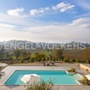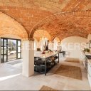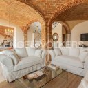 Driving up the private road that winds among rows of vines and fields of sunflowers, one reaches a splendid, totally renovated dwelling that seems to have always belonged to the landscape that surrounds it. The brick profile, the roof of ancient tiles, the light that caresses the facades tell of a discreet, authentic beauty, deeply linked to the land of Monferrato. The surrounding garden, with its panoramic swimming pool, olive trees, and orchard, acts as a trait d´union with the surrounding countryside and leads us directly to step through the door of this incredible home. The main entrance retains the charm of old Piedmontese farmhouses: the large stone staircase introduces the different rooms and guides the eye to the everyday living spaces. The ground floor opens into a flowing sequence of convivial areas, such as the dining room with fireplace, the imposing charming kitchen with vaulted brick ceilings, and the living room that, thanks to its large openings, lives in constant dialogue with the garden and swimming pool. The original materials, expertly recovered, restore warmth and authenticity to each room. The sleeping area, articulated on several levels, is organized in large and independent spaces capable of offering comfort and privacy to each guest. The master suite, carved out of the entire space of the former barn, now brightly lit thanks to floor-to-ceiling windows, presents itself as an authentic dwelling within the dwelling: a generously sized living room with a private terrace introduces the master bedroom equipped with two walk-in closets and en suite bathroom, all in a perfect balance between intimacy and spaciousness. The two cellars, located in the basement, preserve the charm of the original structure: brick vaults, soft light and harmonious proportions that tell the agricultural history of the house and the territory. Although developed in a single body, the property is designed to ensure autonomy and privacy, with charming spaces that wink at the language of contemporary elegance: a house that does not flaunt, but reveals its authentic beauty step by step.