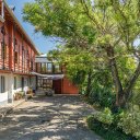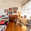 The property is tucked away in a quiet and idyllic location and has access from a country road with little traffic. The house is on three levels and consists on the ground floor of: entrance hall, large and extremely spacious living/living area, kitchen, dining area, service bathroom, access to the integrated service room area and wellness area; second floor right wing: hallway/study with access to the terrace/winter garden, two bedrooms with en-suite bathroom, large balcony along the perimeter of the house; second floor left wing: large bedroom, currently used as Atelier with en-suite bathroom; second and last attic floor: the space is currently divided into bedroom and office but can be used as desired.