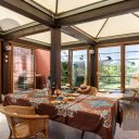 The well-protected winter garden with a view allows you to stay outside even in windy and rainy weather. The large terrace in front of the house invites to linger at any time of the day.
