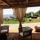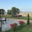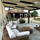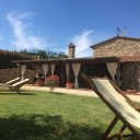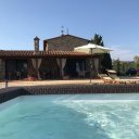 TUSCANY PRESSI VOLTERRA A few kilometers from a typical Tuscan village, there is this beautiful stone farmhouse completely renovated maintaining the characteristics of rustic Tuscan and using natural materials such as terracotta, stone and wood. The house that we offer you exclusively is spread over two floors and every overlook allows you to enjoy breathtaking views of the Tuscan hills. The entrance has remained the typical central one and overlooks on one side the living room divided by an arch with dining area where a door leads to a large bedroom with possibility of four beds and a bathroom; beyond the arch there is the sofa area with fireplace with a large window that leads to the large porch from which you can enjoy the view of the garden equipped with mini Jacuzzi pool and further porch with relaxation area. On the other side of the entrance large kitchen with large fireplace and work area with a beautiful window that allows the view of the hills and the village. The basement serves as a pantry while a glass door allows to exit to the tiled garden where there is a capacious laundry and technical compartment with water softener and boiler. From the entrance the old stone stairs allow us to reach the second floor where there are two double bedrooms with each their own bathroom. The rooms have antique oak parquet floors and the ceilings are with beams, rafters and terracotta.The heating is underfloor heating.