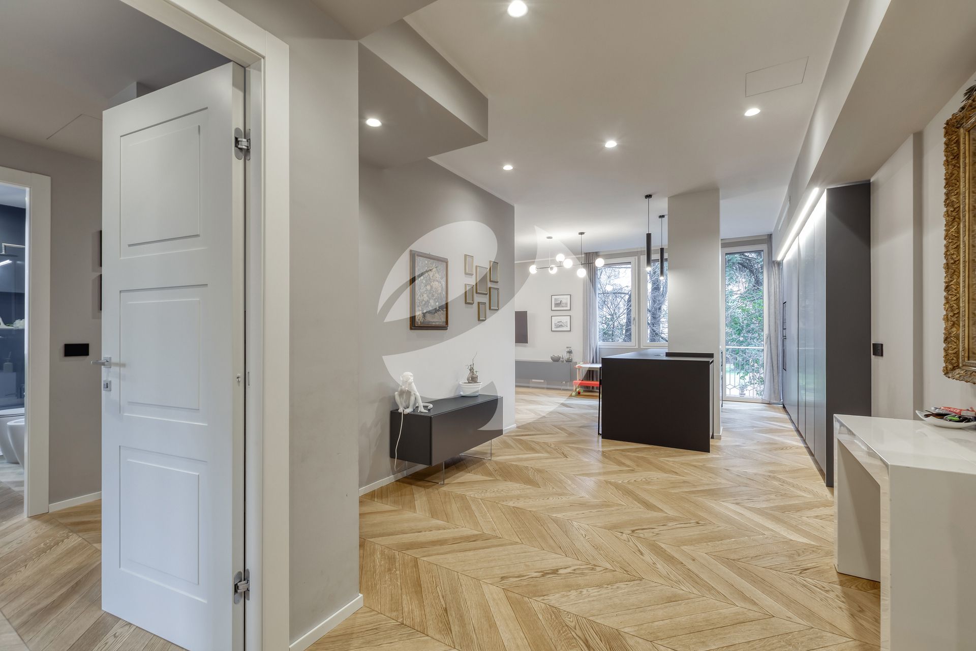 Wonderful four-room apartment of 130 square meters, an ideal housing proposal for those who want to live in a contemporary space, functional and finished with attention to every detail.The entrance leads to an extremely bright double living room with open kitchen, a large and impactful environment, perfect both for daily life and for receiving guests. The sleeping area, well organized, includes three bedrooms and two bathrooms with a modern style.The property stands out for its very high energy efficiency in Class A2, ensured by 12 cm internal thermal insulation, underfloor heating with smart thermostats in each room and controlled mechanical ventilation system with dehumidification and heat recovery, which guarantees always clean air and low consumption.Two-tone aluminum window frames with integrated mosquito nets and coordinated electric shutters complete a high-performance building envelope, further enhanced by Ytong interior masonry, which provides excellent thermal and acoustic insulation.The home is fully home automation, equipped with Bticino Living Now electrical system and management by application of heating, VMC, lighting, shutters, loads of major appliances, alarm system and front door.Security is ensured at the highest level thanks to a wired alarm system with curtain sensors on windows and balconies and keyless access that can be used via app, code or fingerprint.Living comfort is further enhanced by ducted air conditioning with elegant designer vents and a water treatment system with water softener.The elegant and upscale bathrooms feature walk-in showers flush with the floor, opaque sanitary ware and resin finishes combined with custom-made wall tiles.The kitchen, the true centerpiece of the living area, is designed by Meson´s with Dekton cabinets and island, complete with Neff appliances for ovens and induction hob, as well as Bosch refrigerator and dishwasher.The property benefits from triple exposure, two of which have totally open views, providing great brightness throughout the day. Present three balconies renovated in 2023, perfect for pleasant moments of relaxation outside.Complete the property a garage with new door and direct access to the stairwell and elevator, which can be purchased separately for € 50,000.00, a windowed cellar with new door and the largest parking space in the condominium.The condominium context is neat and well-maintained, with an elevator connecting the cellar floor to the residential floors, front door renovated in 2023 and recently painted interiors.A residence in which aesthetics, technology and construction quality come together to offer a superior level of living.