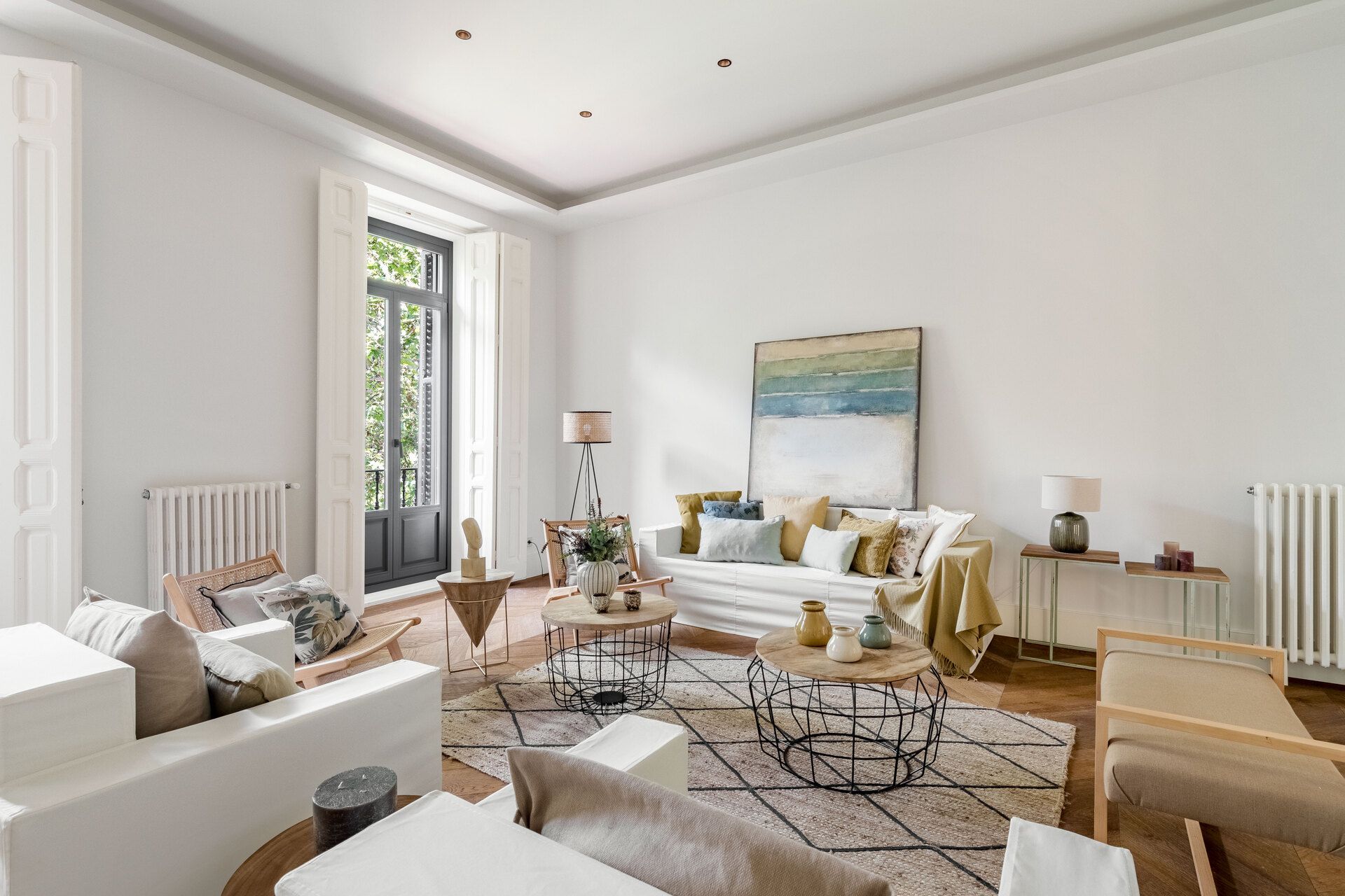 Luxury property located in the Chamberí neighborhood in a classic building with wooden stairs and cage elevator. The property stands out for the 5 balconies to the main street and ceilings of 3 meters high.