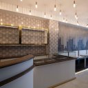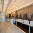L’ingresso accogliente introduce alla hall diurna, al bar, alla sala colazioni e alla reception, spazi concepiti come luoghi di incontro e di calda ospitalità per gli ospiti che arrivano da fuori.