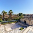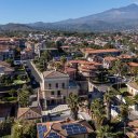 In Aci Sant´Antonio, in a strategic location between Etna and the sea, within a quiet and well-maintained residential context, surrounded by greenery and rich in tradition, we offer for sale a prestigious villa inspired by Tuscan farmhouses. The property, free on all four sides, is surrounded by a large outdoor area with swimming pool, terraces and garden, and is spread over three levels ensuring high privacy also thanks to the two independent entrances. The ground floor welcomes with a large bright living room, made unique by a scenic arched opening in lava stone with a glass window. The travertine staircase, the central element of the house, elegantly connects the various levels. On the same floor there is a kitchen, a service, a dining room and a cozy relaxation area with a fireplace. Direct access to the outside leads to one of the most striking environments: the pool area, perfectly integrated with large terraced areas, green spaces, equipped barbecue area and an outbuilding ideal for guests or independent uses. The first level, accessible both internally and via a refined outdoor lava stone staircase, features open spaces designed for relaxation and conviviality, as well as a bedroom and a bathroom. Balconies run on three sides of the house, offering pleasant views, including one directly overlooking the pool. On the upper floor is the sleeping area: the master suite has a walk-in closet and private bathroom with a corner Jacuzzi and shower. Two more generously sized bedrooms and an additional bathroom complete the floor. From here there is access to a large panoramic terrace with views of Mount Etna. The fixed furnishings, made to measure in fine wood, embellish the rooms. The attic, reached by a modern steel staircase with glass parapet, represents a space of great charm, thanks to the exposed wooden roofs with arched structure and the presence of a fireplace. In the part below, also accessible from a second entrance, spaces are organized to accommodate multiple parking spaces and an additional green area dedicated to relaxation. The property is completed by a ruin of about 200 square meters with an approved project for the construction of three residential units. The area stands out for its reserved atmosphere, completeness of services and cultural and artisan roots, as well as its proximity to the Riviera dei Ciclopi. An ideal solution for those seeking a balance between nature, comfort and authenticity.
