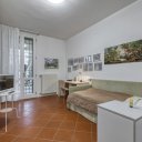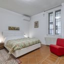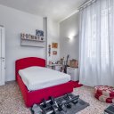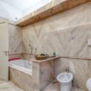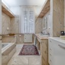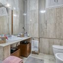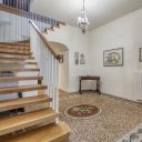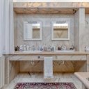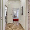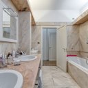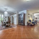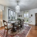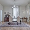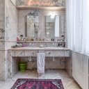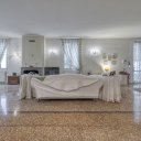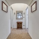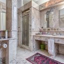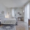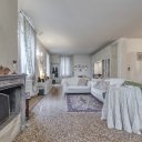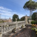 On the upper floor we find a second entrance leading to a large living room paved in Venetian terrazzo, decorated with ornamental motifs and a central rose window. A corridor distributes the spaces: living area, sleeping area and staircase connecting the floors. The eat-in kitchen opens onto a large terrace. The sleeping area includes a master suite with walk-in closet and private windowed bathroom in pink marble, equipped with bathtub and double sink, with access to the terrace. Completing the floor are two additional double bedrooms and a second bathroom, also finished in marble.
