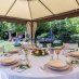 The well-kept park is full of flowers and tall trees, with a very pleasant gazebo for outdoor dining. Dependance with double access, consisting of two rooms each, toilet and kitchen area.