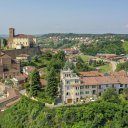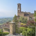 The luxury residence, built on the top of the hill of Cisterna d´Asti, offers a spectacular 360° view of Monte Rosa, Monviso, Langhe and Biella Alps, boasts a typical and elegant facade and is characterized by its original castellated shape.