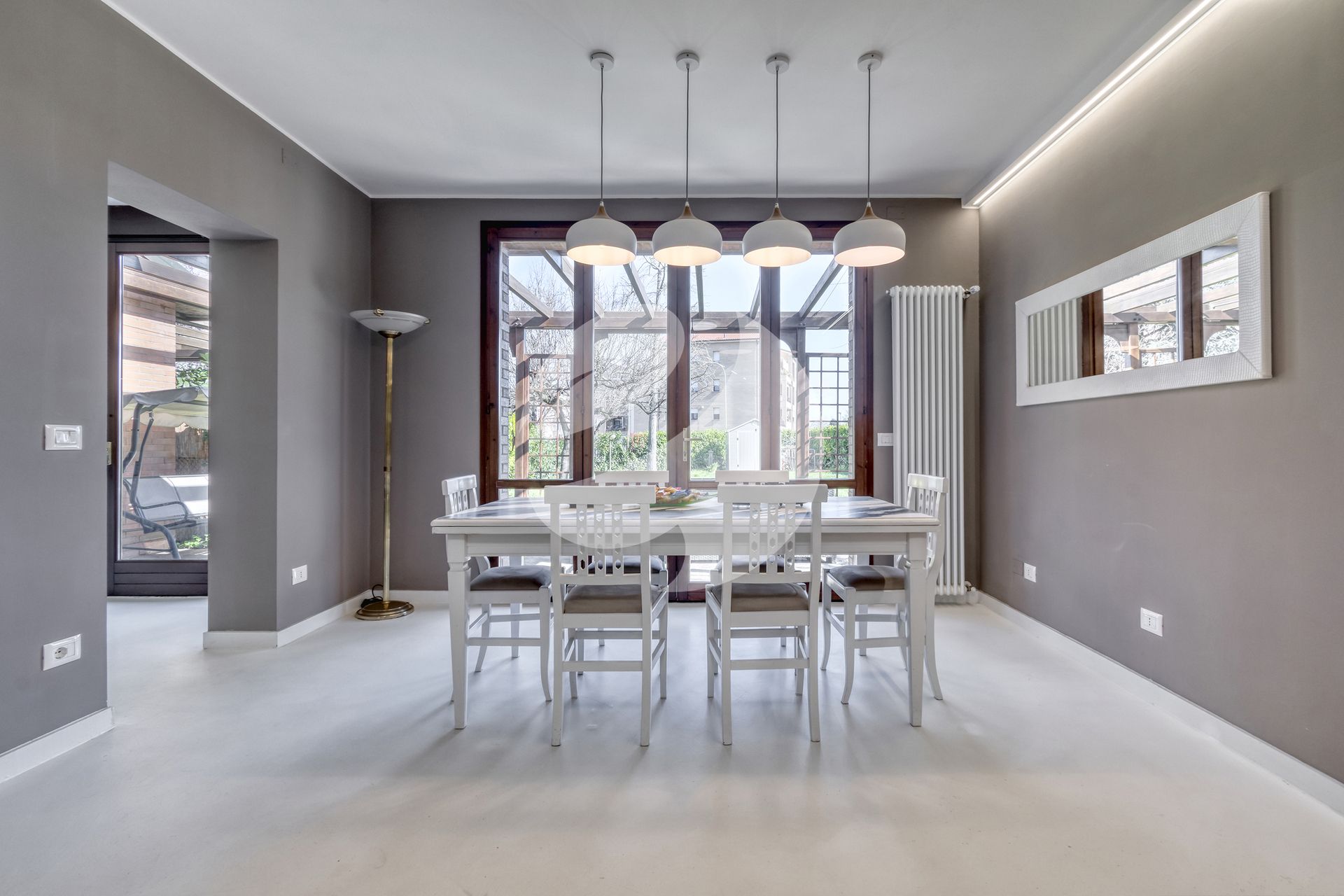 In a residential context reserved and surrounded by greenery, characterized by the presence of villas and cottages that provide privacy, silence and a high quality of life, we offer for sale an elegant portion of semi-detached villa of about 192 square meters, set in an exclusive and well-kept environment.Access to the property is via a private driveway with pedestrian gate that leads to a large garden of about 450 square meters, arranged on three sides of the house (north, south and east). The triple exposure ensures excellent natural light throughout the day and optimal ventilation of the interior.The house, completely renovated in 2023, is on two levels. On the ground floor, the entrance introduces to a hallway that harmoniously distributes the spaces: on the right there is an ante-bathroom with laundry and ironing area and a first windowed bathroom with shower stall, while on the left there is access to a spacious walk-in closet with adjoining study, which also has an independent entrance from the garden. Completing the floor is a bright living area with direct access to the outdoors and an eat-in kitchen, also connected to the garden, where there is a pleasant pergola ideal for outdoor dining during the warm season. Also serving the outdoor spaces is a practical tool shed.The upper floor houses three double bedrooms, one of which has direct access to a private terrace, as well as a large windowed bathroom with walk-in shower and overlooking a second terrace. In the hallway is a spacious attic, accessible by retractable ladder with ceiling trapdoor, ideal as a storage space.The property has high-level finishes and installations, including continuous resin flooring that characterizes all rooms, including the internal staircase with wooden handrail, ensuring visual continuity and ease of maintenance. The fixtures are wooden with double glass and shutters, heating is by radiators powered by a heat pump, and the hot and cold air conditioning system is ducted and integrated in the ceiling, complete with controlled mechanical ventilation for air purification throughout the house.Outside, a semi-retractable manual canopy makes the space even more functional and livable. The property has no condominium expenses, has up-to-date facilities and is equipped with a dedicated area for car parking. The renovation, carried out entirely in 2023 with great attention to detail and living comfort, enhances every room and the house is offered for sale partially furnished.The geolocation of the property may be approximate.Tel. ****** - EDEN HOUSE