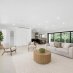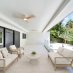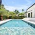 Open-plan living spaces, soaring ceilings and a harmonious continuity between indoors and out. The chef´s kitchen features custom dark wood cabinetry, luxurious stone countertops and brand new appliances, including a gas stove. Full-height sliding doors lead to a private tropical oasis with a brand-new pool, lush garden and elegant privacy surrounded by palm trees. Each bathroom is made of natural stone. The master suite features a walk-in closet with custom lighted wall elements, providing space and style. Outdoor space. Raised house with new roof and impact-resistant windows. A gem!