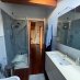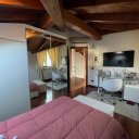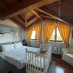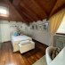 On the ground floor is a bright living room with dining area and direct access to the porch for outdoor relaxation, an eat-in kitchen, a guest bathroom, and the first bedroom on the first floor.