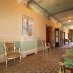 The comfortable open staircase that connects the floors is edged by a wrought-iron mantle with a wooden handrail. The gray stone steps harmonize with the masonry plant motifs that tint the delicate chamois-yellow background with soft sage green.