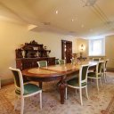 The entrance presents a long and wide corridor that crosses the entire length of the mansion, flowing into the back garden bordered by hydrangeas. On either side of the corridor are the rooms that amaze with their refinement capable of combining the charm of the old with the functionality of the present. The billiard room anticipates the one dedicated to hospitality: the important table that inhabits it is made of a single piece and welcomes a high number of diners in its presence.