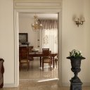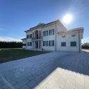 Going up a couple of steps, the entrance porch is supported by two imposing columns that anticipate precisely the style and elegance that this property wants to convey; once you enter to welcome you you will find a large entrance hall that in a completely specular way divides the two halves of the villa, proceeding on the left passing a convenient corridor we find the first room useful as a study, on the right, opening the sliding door we access the dining room with French doors to be able to access directly into the outdoor garden, returning to conclude this side we find the eat-in kitchen with custom equipped wall, also here with access to the outside where a comfortable porch has been created where you can dine in the summer periods.
