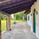 Stepping through the gate, a small private kingdom opens up before your eyes: a lush garden of over 5.000 square meters that envelops the main house, the rustic, elegant porch and the large garage in an embrace of greenery, fragrances and precious silences.