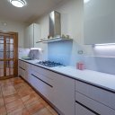 The kitchen is modern and sophisticated and complements a beautiful and convivial dining area.
