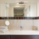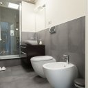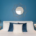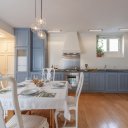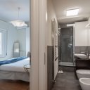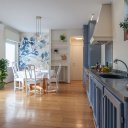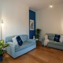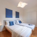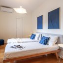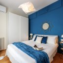 Este apartamento no es simplemente un lugar donde dormir. Es el placer de volver a casa después de un día perdido por las callejuelas del centro, dejarse caer en un mullido sofá, encender una vela perfumada mientras fuera el cielo se tiñe de rosa. Es la pared azul noche que te envuelve como un abrazo, las bombillas que dibujan cálidas sombras en el techo, un libro sobre la mesita de ónice esperando a ser hojeado.