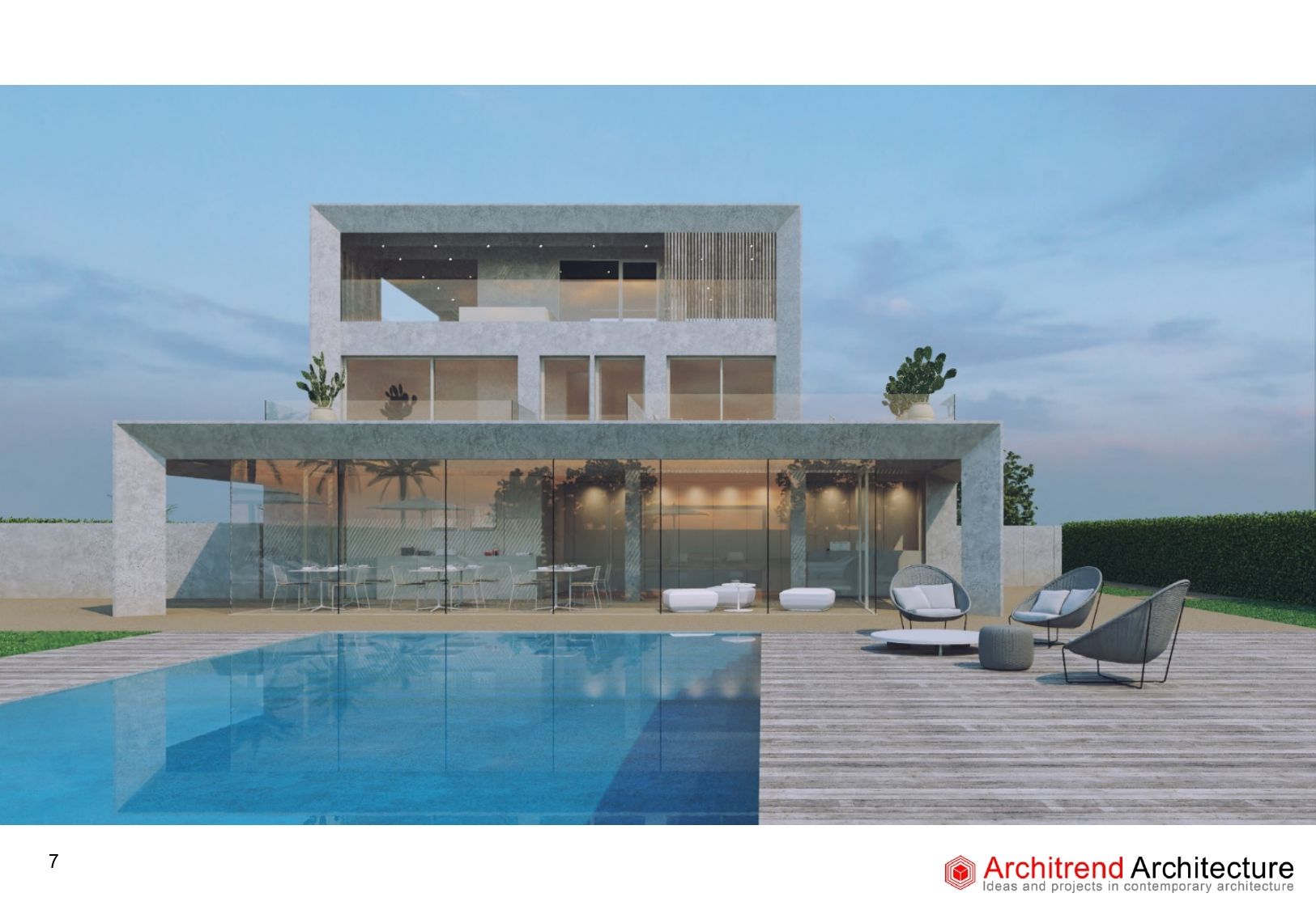 Diseñado por Architrend Architecture, el concepto se basa en un principio esencial: dejar que el espacio dialogue con la luz y el terreno. Líneas puras, volúmenes horizontales, materiales naturales. La arquitectura se abre hacia el exterior, eliminando cualquier barrera entre interior y paisaje, para crear una continuidad fluida entre ambientes. El resultado es un lugar donde cada detalle está pensado para ser vivido, no simplemente observado.
