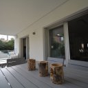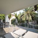 Para completar esta extraordinaria propiedad, ambos pisos disponen de un precioso solárium. Esta zona común es un verdadero pedazo de paraíso, equipado también con una práctica ducha termostática para refrescarse después de un día al sol. Las instalaciones son todas de última generación, construidas según la normativa vigente de ahorro energético. La calefacción es por suelo radiante, alimentada por eficientes bombas de calor discretamente situadas en una zona reservada. Para lograr el máximo confort incluso en los calurosos días de verano, la refrigeración es por conductos de aire. La cuidada moqueta sintética verde del pavimento se integra perfectamente en el paisaje circundante, creando una agradable continuidad visual con los majestuosos pinos marítimos y las altas palmeras que enmarcan la propiedad.