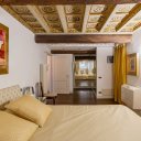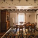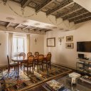 El piso se abre a un escenográfico hall de entrada que conduce a un salón de absoluta elegancia de más de 27 metros cuadrados. En todas las estancias, la mirada queda cautivada por la extraordinaria belleza de los techos, cuyas refinadas decoraciones se convierten en el precioso friso que define el alma de la residencia. Es una belleza que envuelve los espacios, transformando cada habitación en un cofre de rara elegancia, donde el detalle artístico crea una atmósfera íntima, cálida y profundamente aristocrática. Es el marco perfecto para acoger la vida social o perderse en momentos de reflexión, envuelto en el silencio irreal de uno de los edificios más exclusivos de Roma. La cocina, espaciosa y perfectamente integrada, es el corazón convivial de la casa, combinando funcionalidad y estilo al amparo de estos mismos imponentes volúmenes.