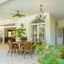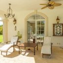 Los techos abovedados de toda la villa crean una sensación de amplitud y apertura. El gran salón interior cuenta con ventanales que van del suelo al techo y puertas francesas que dan a patios cubiertos. Esta propiedad está diseñada con espacios abiertos cubiertos para permitir una cómoda vida al aire libre y varias zonas de sombra para relajarse y disfrutar de la brisa fresca.