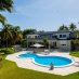 La villa cuenta con un gran salón de planta abierta con techos de 9 metros de altura, que se abre a la terraza cubierta con vistas a la piscina y al césped. La cocina está conectada con el comedor, por lo que es ideal para recibir invitados.