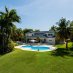 La espaciosa veranda cubierta es perfecta para recibir invitados o relajarse con la familia mientras se disfruta de las vistas a la piscina. Las palmeras bordean el perímetro del jardín tropical, ofreciendo privacidad y refrescantes brisas caribeñas. El patio trasero es un oasis meticulosamente ajardinado con exuberantes plantas tropicales, árboles maduros y una gran piscina.