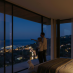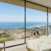 Las master suites son santuarios privados. La textura de la piedra vista, iluminada por haces de luz rasante, crea un sofisticado contraste con la calidez de la madera. Despertarse con la silueta de las Islas Eolias en el horizonte y las luces de la costa es un lujo sensorial atemporal.