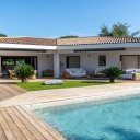La propiedad cuenta con una piscina, una zona de petanca y un garaje de 68 m² con puerta automática. En el interior: un luminoso salón con acceso a una gran terraza, una cocina equipada con lavadero contiguo y acceso directo al garaje.